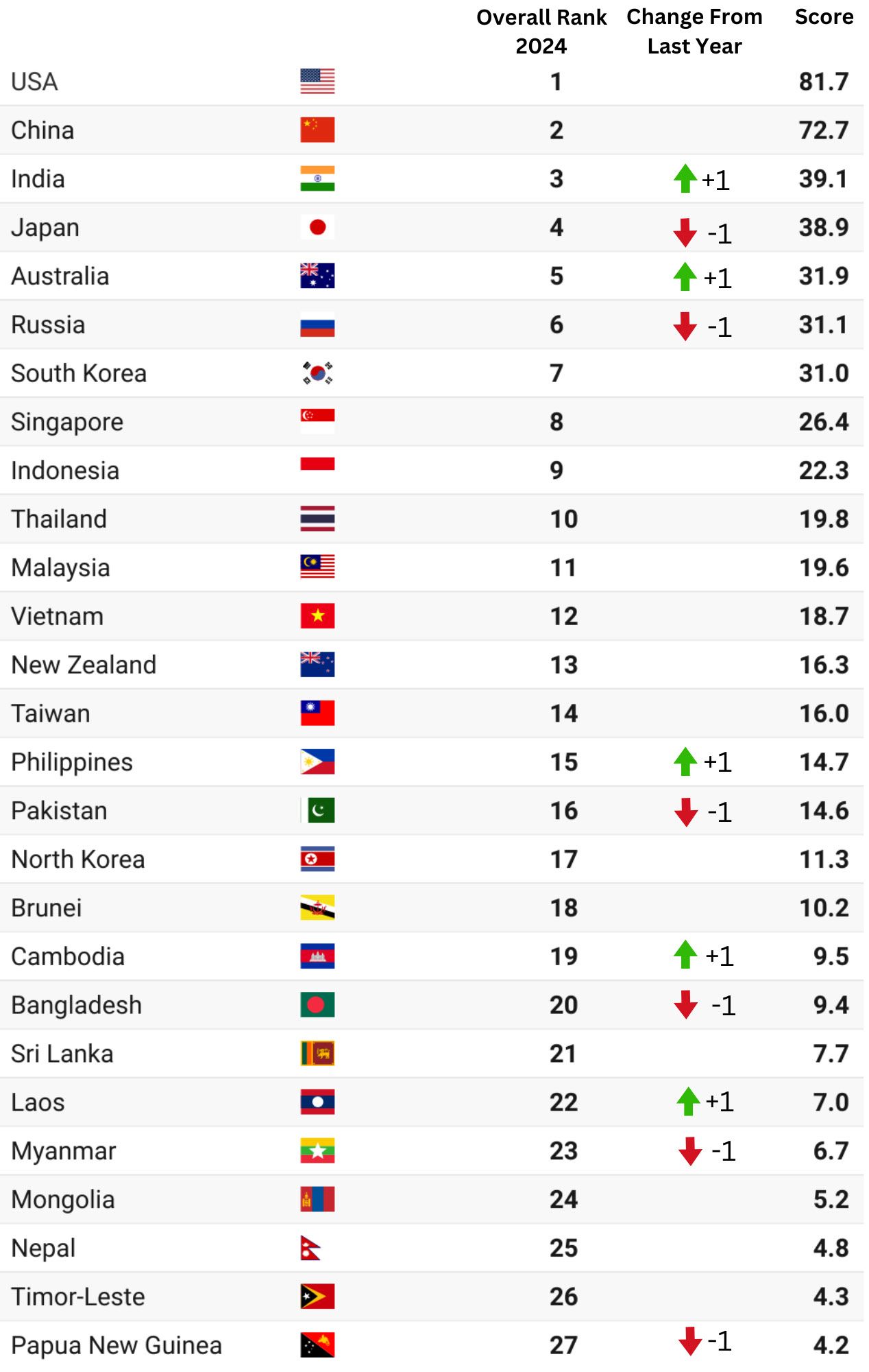 Lowy Asia Power Index, 2024