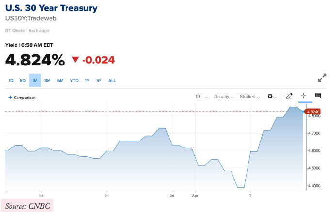 However, Trump is now clearly high on his own supply. Even with the 9 April tariff regime, Trump is imposing high tariff rates on our three largest trading partners. Currency and bond market traders — no fools they — are certainly not acting as if we’re on a path to successful deals.